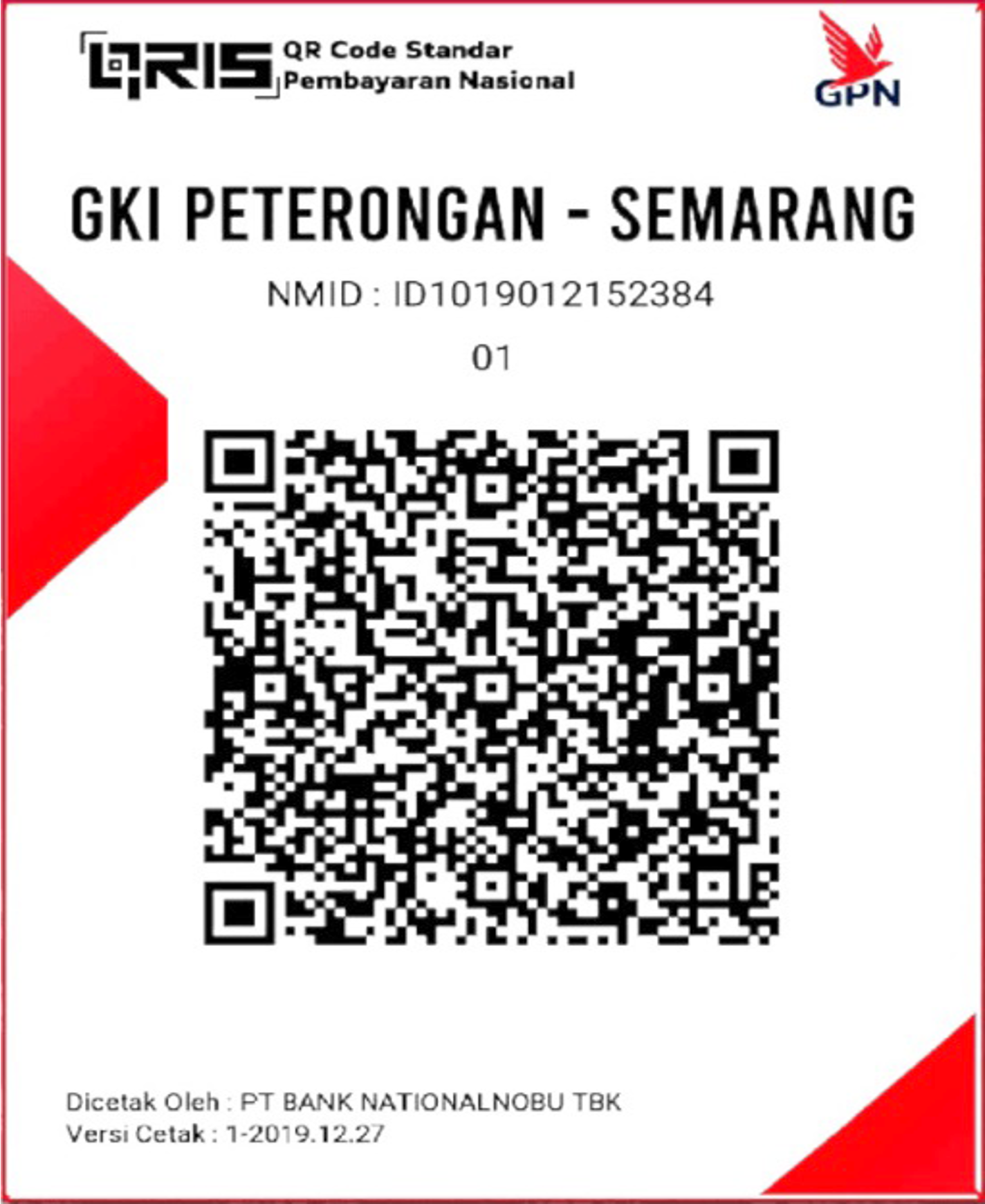 Transfer melalui ATM atau menggunakan QRIS, dengan menambahkan kode unik di dua digit terakhir nominal persembahan Saudara.